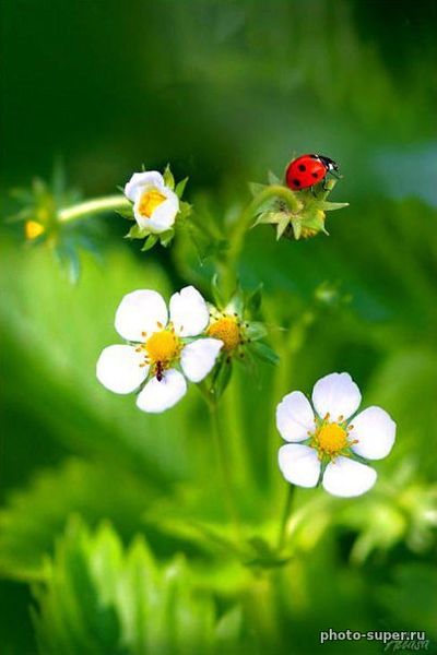 » Божья коровка на цветках земляники